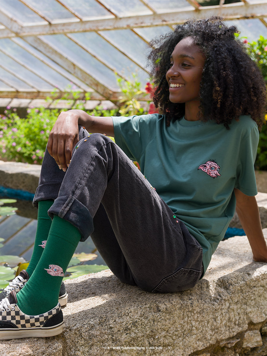 The collection goes beyond socks with three 100% organic cotton T-shirts that reimagine timeless wardrobe staples through the lens of the wizarding world.
