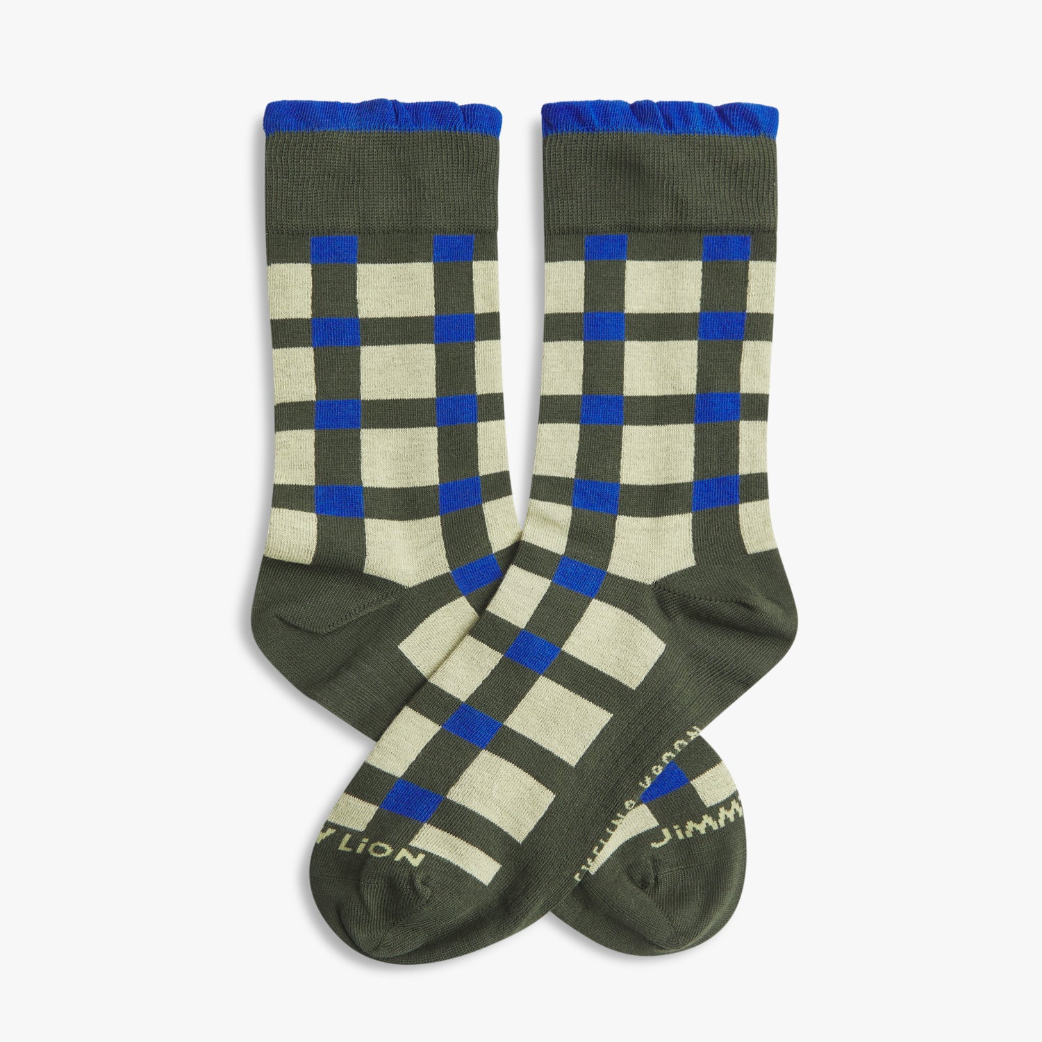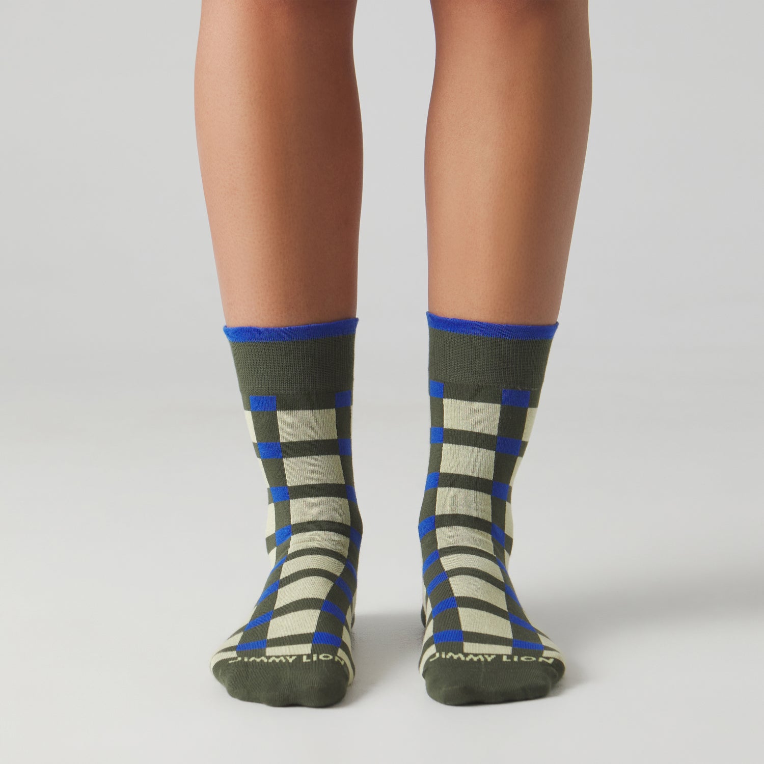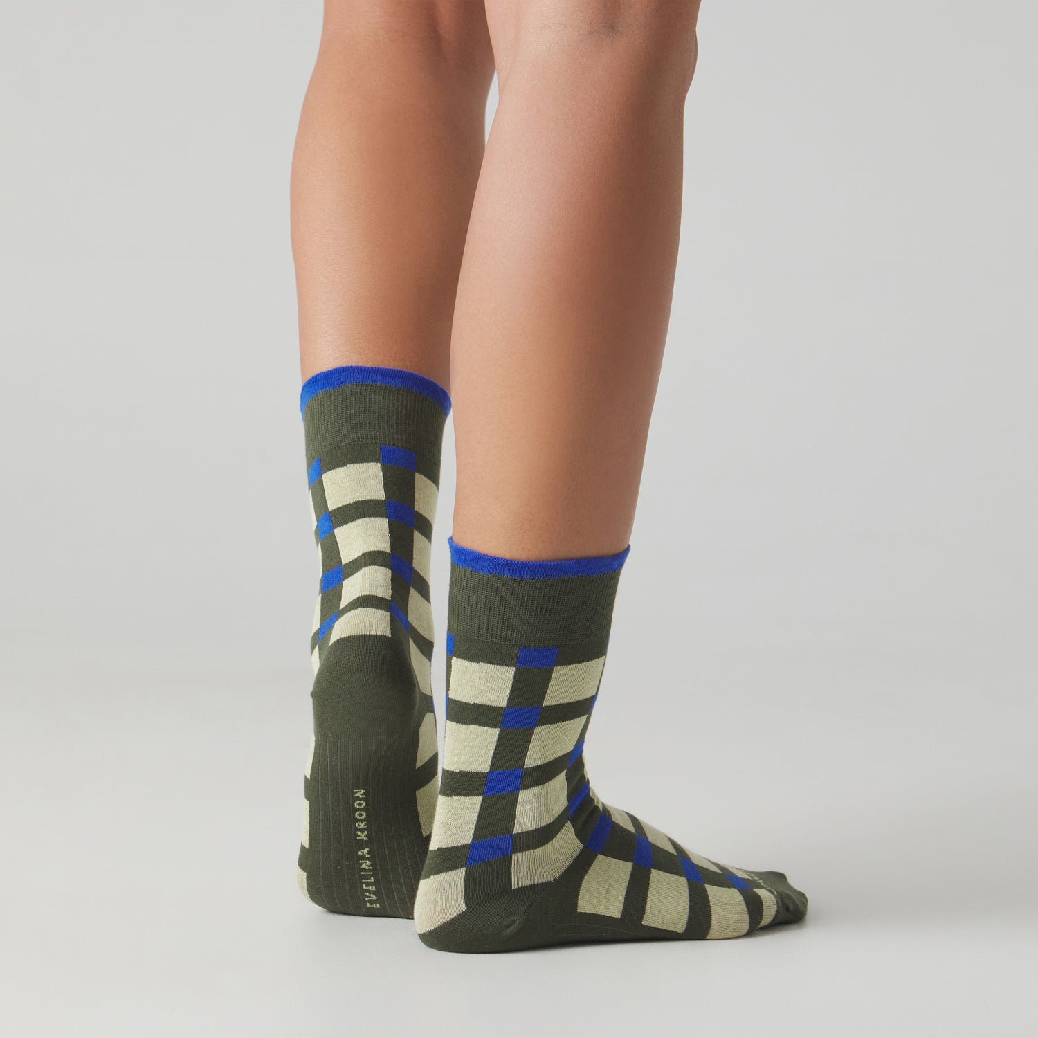 Swedish multidisciplinary artist Evelina Kroon brings her distinctive style to the Evelina Kroon Yellow Pattern design — an original and vibrant pair of socks. In her own words: “What I hope to evoke through my work depends on the project, but in general, I want people to feel something quietly familiar.” Every detail of this pair was designed with care — from the textured cuff to the one-of-a-kind color combinations. Don’t miss out! Add a bold, colorful touch to your look with these unique quarter-length socks.